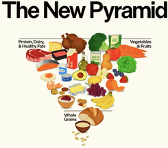 But with RFK jr as the current US health secretary, the food pyramid has recently changed. It has basically been inverted. Now, grains are at the "top" (eat less) and fats and