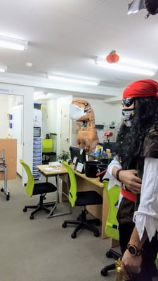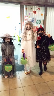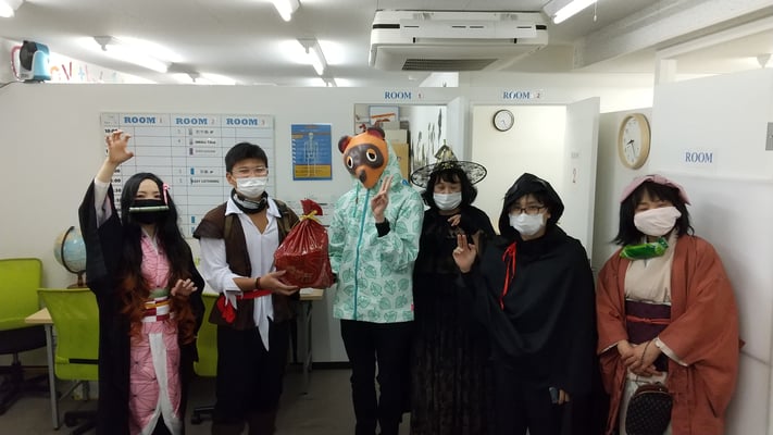 ボランティアとして3名の生徒さんにご協力いただきました。その後、教室で仮装show&tellを行い、今年の仮装大賞は、ジャックスパロウでした!! Thank you everyone for the fun night!